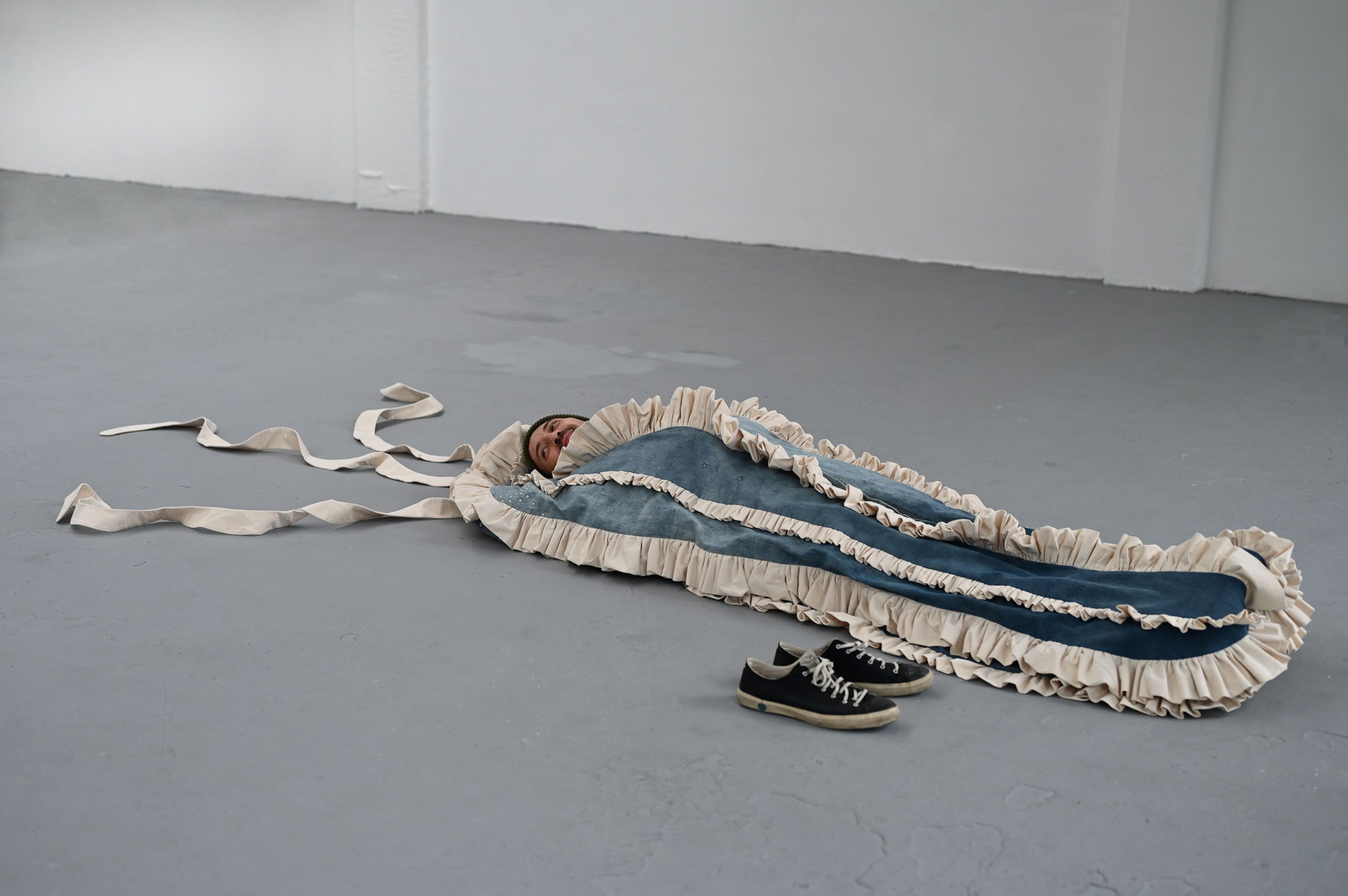 Stefanie Klingemann presents a new durational performance taking place in a meadow near the museum. In her signature style, she stages a temporary intervention into the landscape using her own body as a tool and as a marker. A performance that can be observed for as long and as often as you like, as the title suggests.