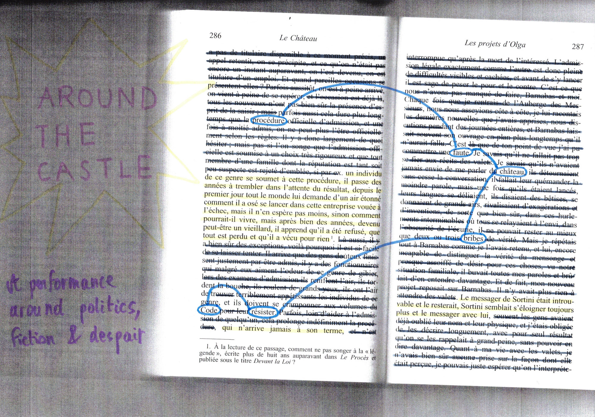 Taking Franz Kafka’s novel “The Castle” (1926) as a starting point, this performance explores our relationship with invisible bodies confronted by the inaccessibility of the Fortress Europe. Taking the role of Kafka’s surveyor, Robin Faymonville will read, recite, and trace lines on the ground to materialise the political fictions that borders represent.